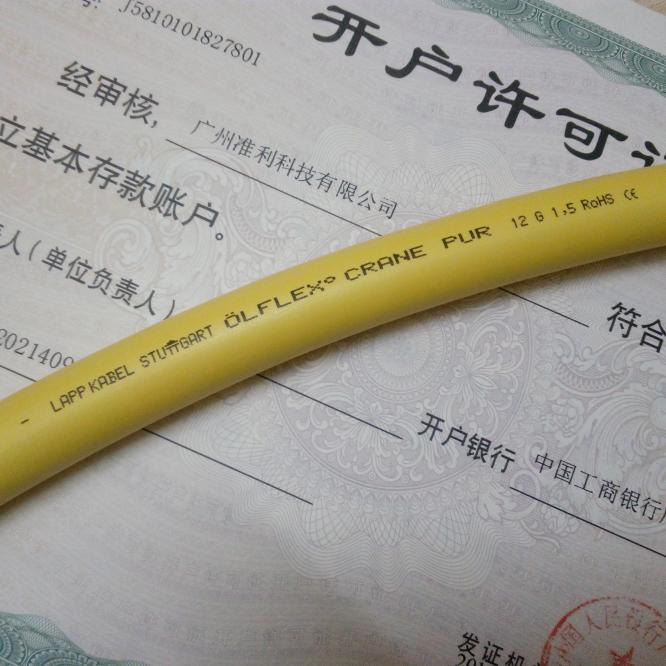 广州准利科技有限公司✆+86 13539761159 ☎+86 2062208903 ✉13539761159@163.com长期稳定一手正宗货源优势供应卷筒电缆LAPPKABEL STUTTGART ÖLFLEX® CRANE PUR 12G1,5 RoHS ce电缆卷筒用电缆,源自德国U.I.Lapp GmbH Schulze-Delitzsch-Strasse 25 - 70565 Stuttgart U.I. Lapp GmbH D-70565 Stuttgart A Lapp Group德国原装进口的ÖLFLEX® CRANE PUR卷筒电缆,是前KRANFLEX PUR电缆卷筒型号的新升级产品,耐拉伸负荷,高柔韧性,耐磨损,耐切割,耐油,抗紫外线,阻燃,耐高机械应力.适用于弹簧电缆卷筒与电动电缆卷筒、抓斗机、航车、龙门吊行车、装配车间、输送设备、港机设备、起重设备、升降机,工程机械,传输和运输系统中.弯曲半径是小电缆外径的7.5倍,U0/U:0,6/1 kV的工作电压.4 KV高压测试.TPE芯线绝缘,无卤PUR内、外护套,内外护套中间夹层带抗拉纤维编织网加强芯,-40°C/+80°C应用温度范围,可用于户外.还可用于水中敷设;相对应用的电缆还有:KRANFLEX NSHTOU【升级型号OLFLEX CRANE NSHTOU】、KRANFLEX VS (N)SHTOU【升级型号OLFLEX CRANE VS (N)SHTOU】。U.I. Lapp GmbH D-70565 Stuttgart A Lapp Group 8系品牌:OLFLEX、UNITRONIC、HITRONIC、EPIC、SILVYN、SKINTOP、FLEXIMARK、ETHERLINE,